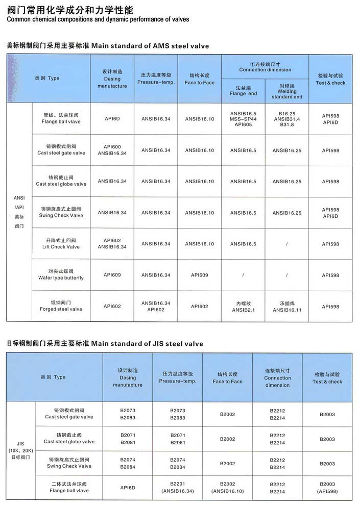 美标、日标钢制阀门采用主要标准